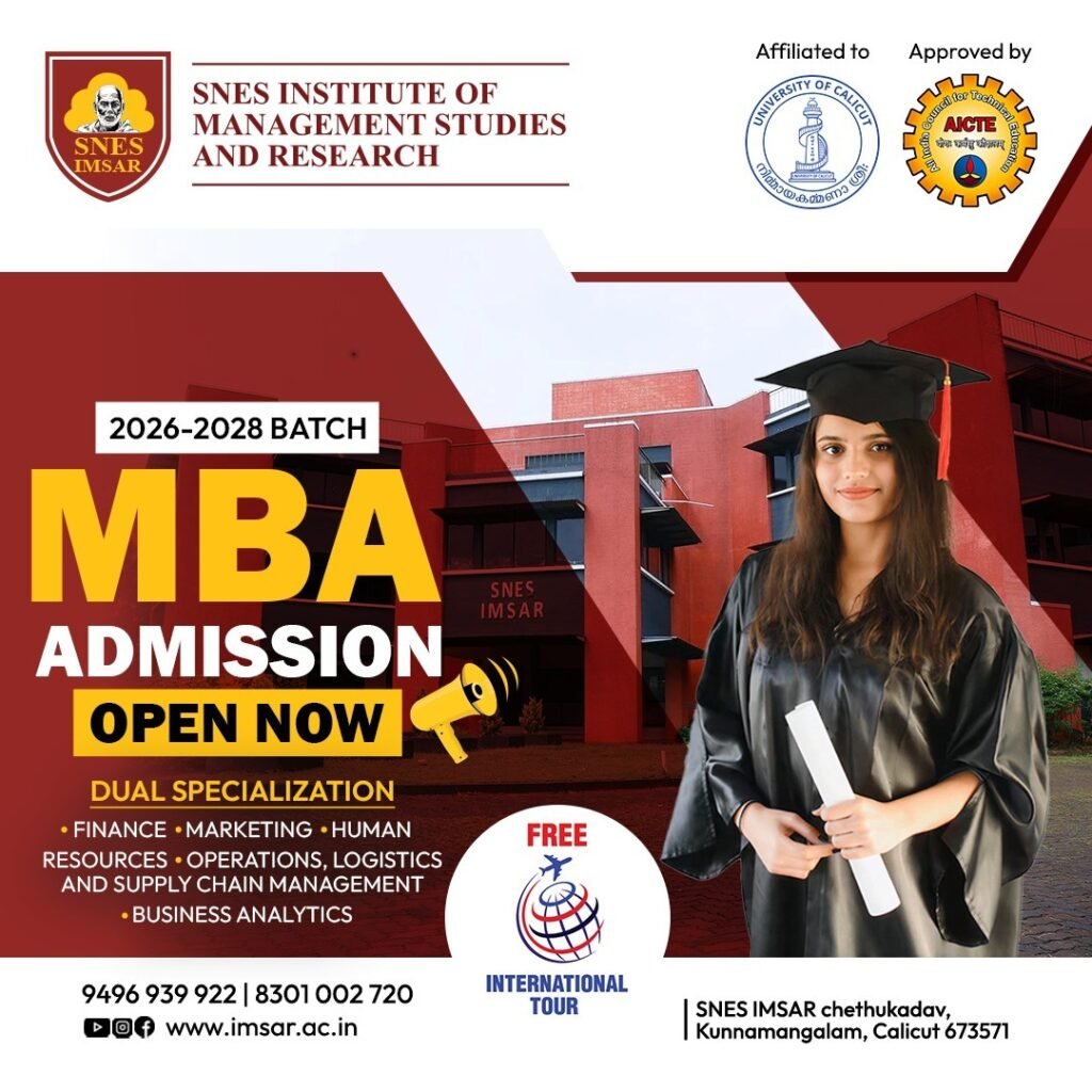 The Institute of Management Studies and Research (IMSAR) at SNES (Sree Narayana Educational Society) was established by a charitable society that has been dedicated to the “cradle to employment” principle for many years.